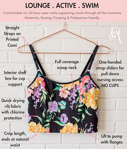 • LOUNGE, ACTIVE, SWIM – Stop changing in and out of your bra to pump. Our cami is designed to be worn as a swimsuit top, a sports bra, a lounge/sleep bra, or by itself as a crop top! Our quick drying fabric is designed for a comfortable day at the pool and wicks away moisture during your workout. Soft enough to wear with your sweats and supportive enough to wear out! Our custom designed printed Amelia Cami is a must have for every pregnant and postpartum mom!