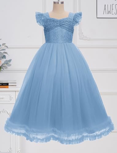 IBAKOM Flower Girl Formal Wedding Maxi Dress Flutter Sleeve Junior Bridesmaid Outfits Tween Pageant Tea Party Ball Gown 5