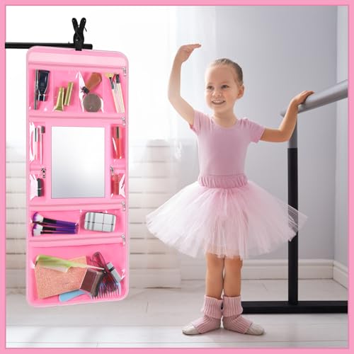 • Makeup Storage Bag with Mirror: this hanging makeup bag neatly and securely stores all your makeup, hair accessories, and other clothing items, and the internal mirror also helps you organize your hair and makeup accessories flexibly, good for any girl working out or dancing