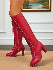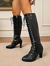 HOT ! Women's Knee High Lace-Up Boots with Block Heel – Faux Leather Victorian Gothic Style Tall Boots for Ladies, Perfect for Cosplay, Steampunk, Parties & Fashion Outfits
