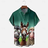 More information about Men's Animal Sheep Donkey Shirt Button Up Shirt Short Sleeve Funny Outdoor Vacation Summer Spring Turndown 3D Print Collared Shirts Front One Pocket Green