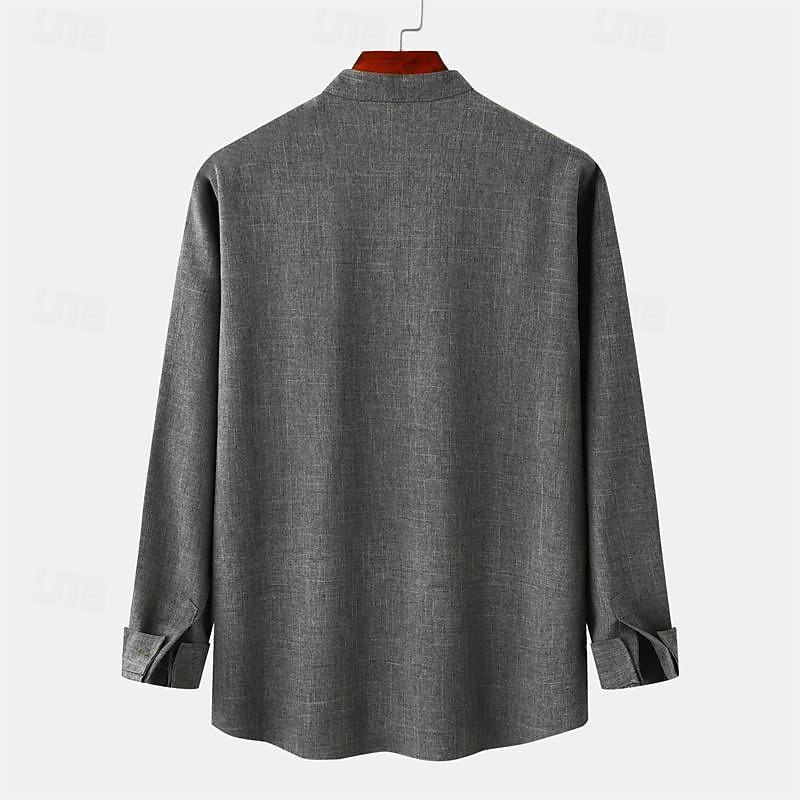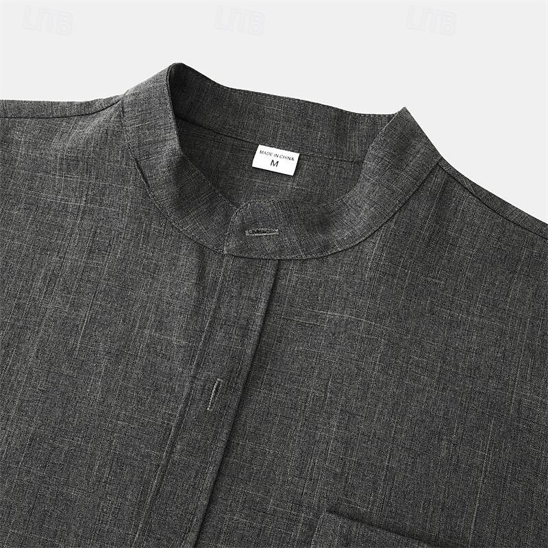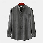 More information about Men's Shirt Linen Shirt Chinese Collar Shirt Mandarin Collar Shirt Casual Shirt Button Up Shirt Plain Vacation Hawaiian Red Dark Green Khaki Long Sleeve Grandad Collar Spring & Fall Clothing Apparel