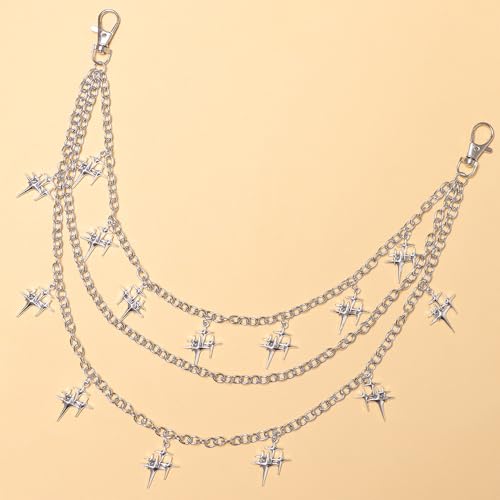 Longita Pants Chain for Men Jean Chains for Women Y2K Star Jean Pocket Chain for Pants Biker Hip Punk Chains Silver Y2K Jewelry for Women Accessory Trendy Fashion for Music Festival Concert Cosplay 7
