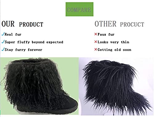 MSD-1 Woman's Tibetan Fur Boot With Real Mongolian Hairy Furry Sheepskin Shearling Lamb Skin Snow Boots Long Curly Hair Shoes For Young Lady Girls Outside Ski Fluffy Footwear Christmas Gifts Mid-Half Short Booties All Over Fur (9, White) 4