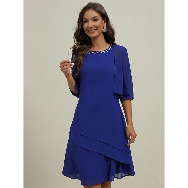 More information about Women's Wedding Guest Cocktail Dress Elegant Dress Set Work Chiffon Dress Office Fashion Ruffle Patchwork Mini Dress Crew Neck Half Sleeve Plain Summer Spring