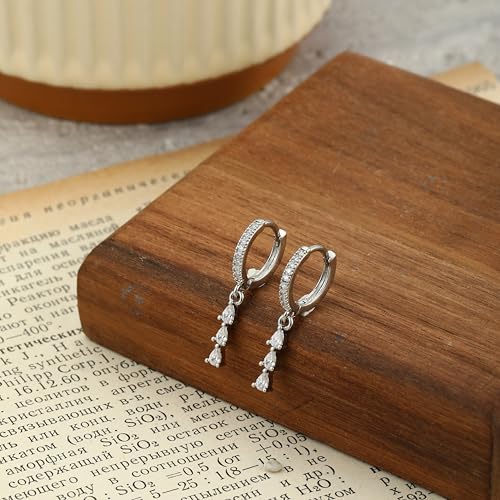 CAROVO Dangle Earrings for Women Trendy 14K Gold/Silver Plated Hoop Earrings for Women Dainty CZ Huggie Drop Dangling Earrings Hypoallergenic Jewelry Gift 6