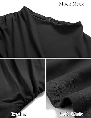 MIROL Women's 2025 Bodycon Maxi Dress Mock Neck Side Slit Fall Long Sleeve Ruched Long Dress 3