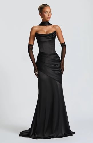• 【Features】Strapless Prom Dresses for Women 2026, Prom Dresses with Scarf, Ruched Satin Evening Formal Gown with Scarf, Mermaid Bridesmaid Dresses for Women, Long Prom Dress with pleats, Scarf Prom Dress 2026, Satin Maxi Long Party Dress, Wedding Guest Dress