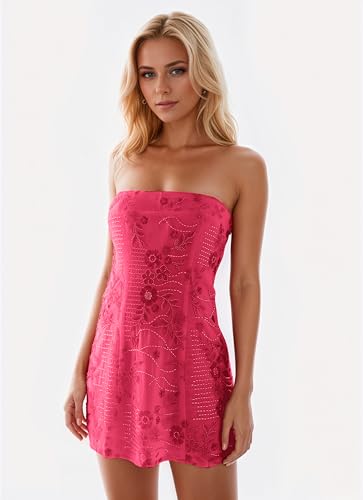 • Features: Cute summer dress for women features strapless, backless, slim fit, flower patterned sequins, mini length and drop waist. Rave festival sparkly dress, beaded bodycon night out dress, Y2K sleeveless sequin mini dress for women