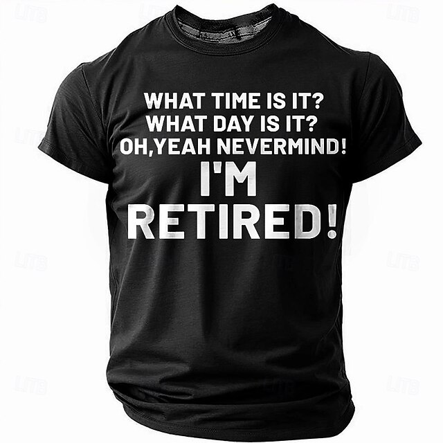 Men's Funny Retired Graphic T-Shirt | 'What Time Is It? I'm Retired' Short Sleeve Casual Top 11