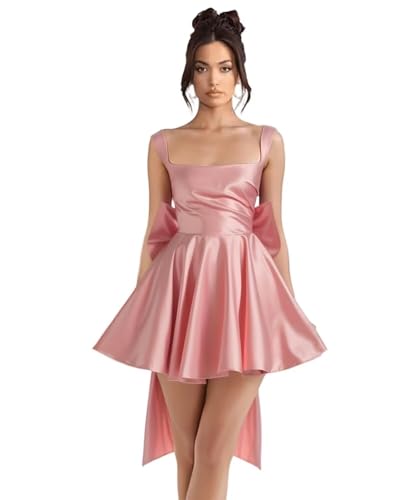 • Design:The satin homecoming dresses has a square neck design,an elegant a line silhouette,which enhances the overall sense of nobility and charm.Satin Short Prom Dress for Teens,Spaghetti Straps Homecoming Dress,Bow Short Evening Party Dress,Square Neck Cocktail Gown,Pleated Mini Dresses,A Line Mini Ball Gown,Zipper Back Formal Prom Dress,Built-In Bra.