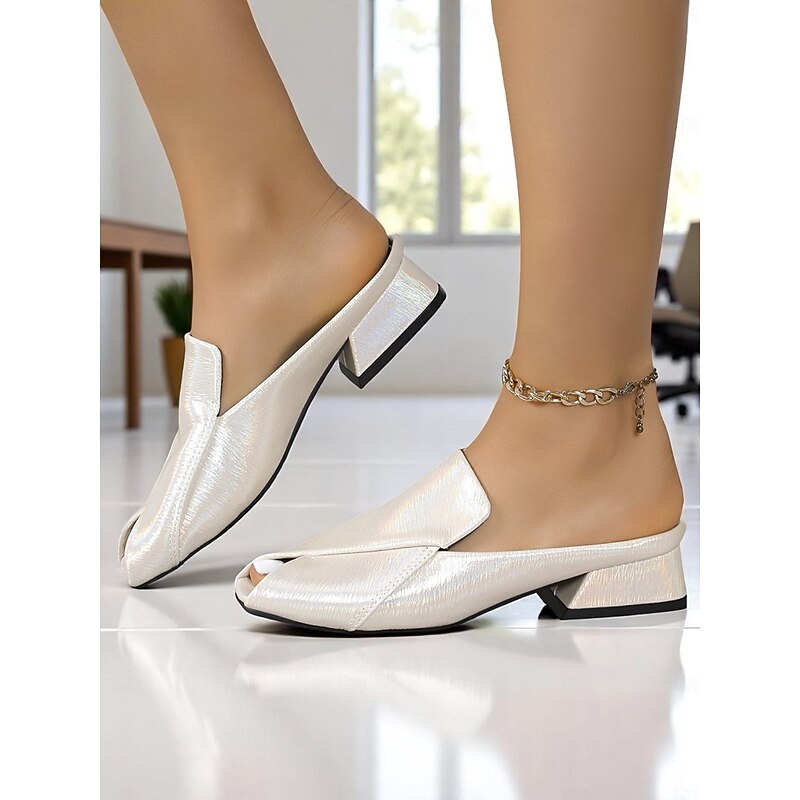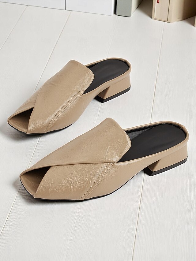 Women's Peep Toe Mules– Folded Design Faux Leather Mule Shoes for Modern Work Style 24