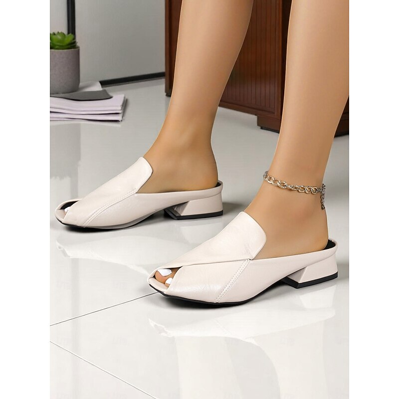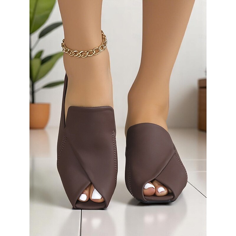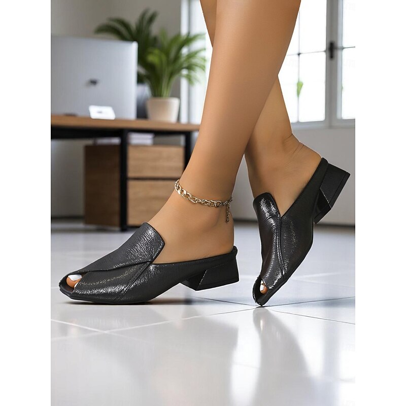HOT ! Women's Peep Toe Mules– Folded Design Faux Leather Mule Shoes for Modern Work Style
