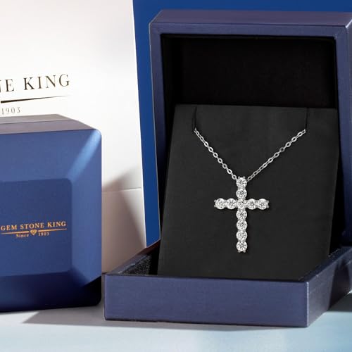 HOT ! Gem Stone King Moissanite Cross Necklace | 925 Sterling Silver | 1.76 Cttw | 1 Inch | Jesus Christian Religious Crucifix Jewelry Pendant Necklace for Women | with 18 Inch Silver Chain