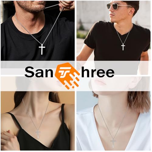 HOT ! SanThree 2.2mm Pure Titanium Twist Link Chain Cross Necklace for Men Women Sensitive Skin, Ultra Light Welded Skin Friendly Oval Chain for New Year Valentines Day Birthday, 23.62 Inches