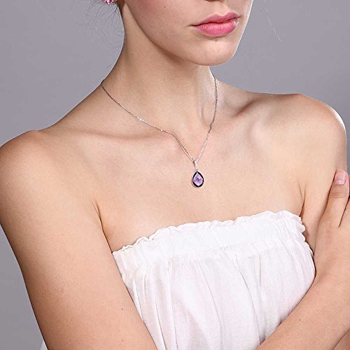 • EXQUISITE AMETHYST GEMSTONE: This pendant necklace features a stunning 16X12MM pear-shaped amethyst gemstone with a 6.50 carat total weight. The deep purple color of the amethyst is vibrant and eye-catching, adding a touch of elegance and sophistication to your look.