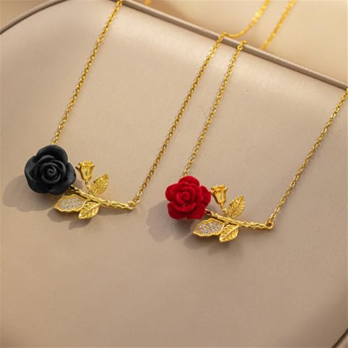 Elegant Rose Flower Pendant Necklace for Women Stainless Steel Gold Plated Crystal Leaf Blossom Charms Choker Chain Adjustable Necklaces Dainty Wedding Birthday Jewelry 18" 3