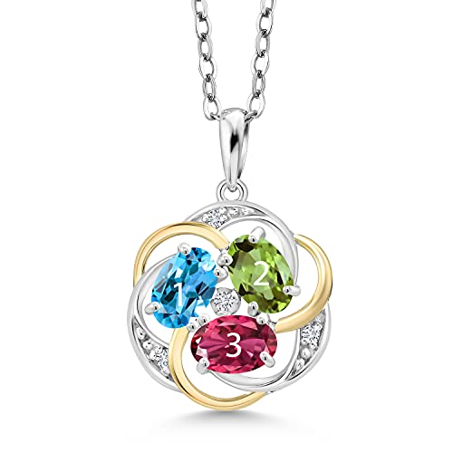 HOT ! Gem Stone King 925 Sterling Silver and 10K Yellow Gold Customized and Personalized 3 Stone Oval Gemstone Birthstone and White Lab Grown Diamond Pendant Necklace For Women with 18 Inch Chain