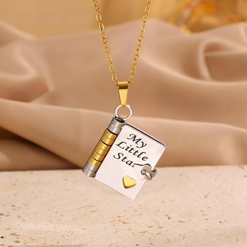 HOT ! My Little Star Book Necklace for Daughter Book Necklace with 6 Pages Engraved Information a Letter for My Daughter Dainty Charm Necklaces from Mom Dad Birthday Gifts for Women