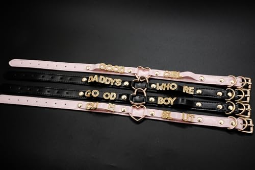 • Signature Design: Inspired by classic punk and leather choker collar aesthetics, this black choker features a shiny golden heart O-ring and sparkling rhinestone letters. A bold collar for women look perfect for goth or punk fashion lovers.