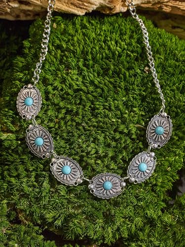 MINACHI Boho Vintage Floral Created Turquoise Necklace Choker, Old Fashion Jewelry for Women 7