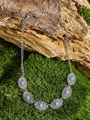 MINACHI Boho Vintage Floral Created Turquoise Necklace Choker, Old Fashion Jewelry for Women 5
