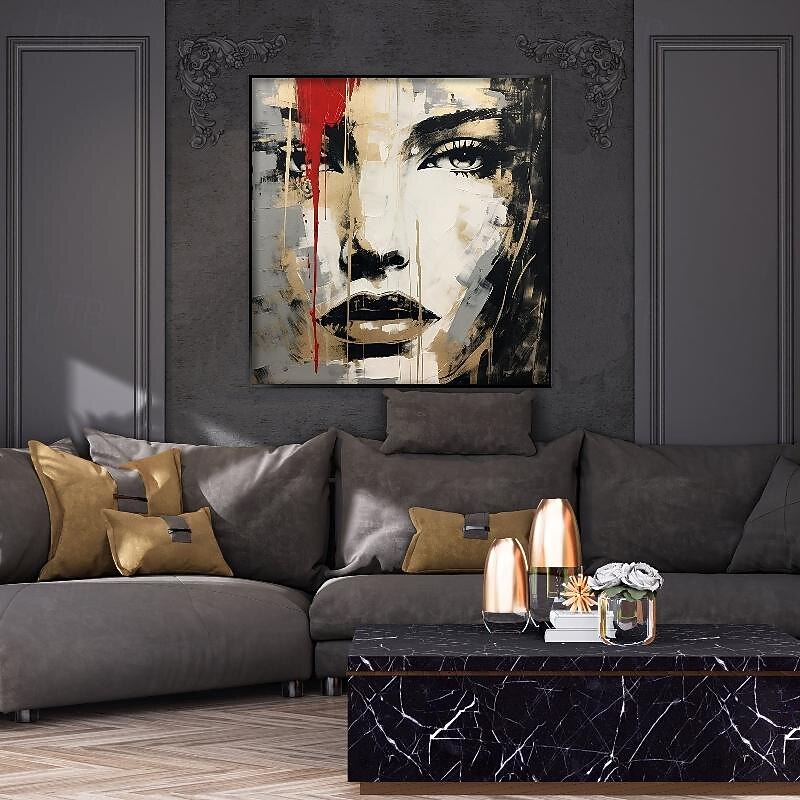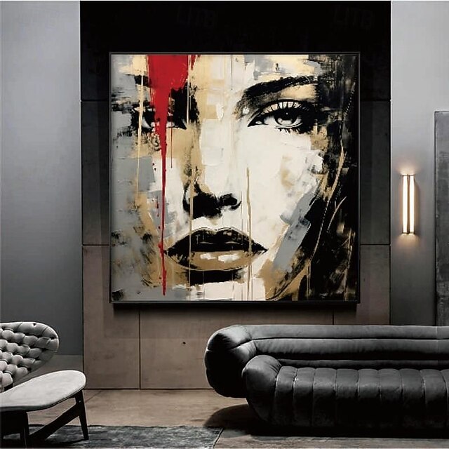$108.99 - Hand painted Woman Face Red Gray Gold Black oil painting 100% Hand Painted Textured face Painting Acrylic Abstract Oil Painting Wall Decor painting for Living Room Office decoration 2025. Shop for cheap Abstract Paintings online? Buy at lightinthebox.com on sale today!