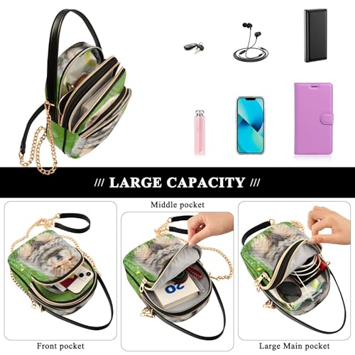 More information about Single Shoulder Handbags Chow Puppy Dog Grass Quilted Chain Wallet Cell Phone Purse Cute Zipper Bowler Tote Ladies Satchel, 5.9" × 8.3" × 3.1"