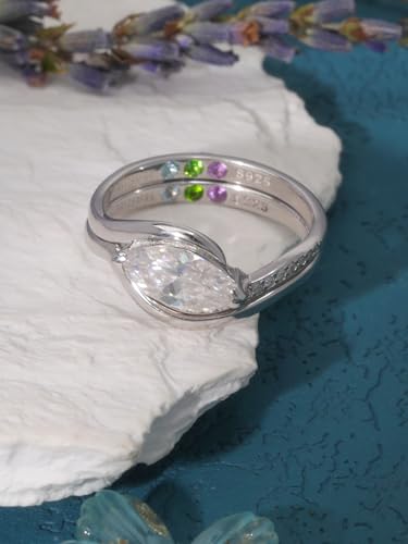 2-PC Marquise Cut Moissanite Ring Set | S925 Sterling Silver 1CT Wedding Jewelry, Single Side Pavé & Twisted Band, Non-Tarnish Hypoallergenic Bridal Rings for Women 5