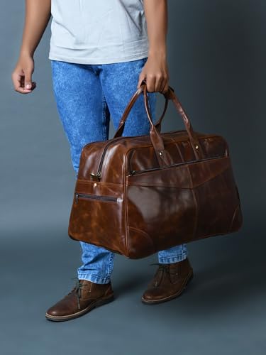 More information about Duffle Bag For Men and Women, 21 Inch Vintage Buffalo Leather Travel Duffle Bag, Genuine Carry On Overnight Bag, Weekender Gym Bag with Shoulder Strap, Carry on Airplane Luggage Bags