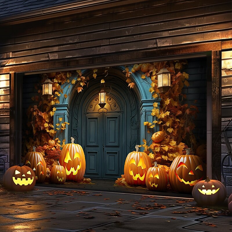 Halloween Garage Door Cover Large Hanging Backdrop Pumpkin 3D Dark Punk Gothic Style Party Outdoor Shooting Backgrounds Front Door Home Decor 10