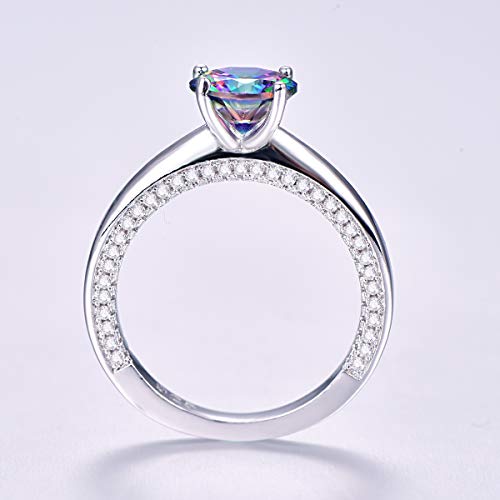 925 Sterling Silver Plated Simulated Rainbow Topaz Solitaire Engagement Ring for Women 6