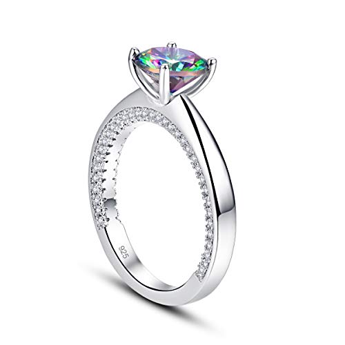 925 Sterling Silver Plated Simulated Rainbow Topaz Solitaire Engagement Ring for Women 5