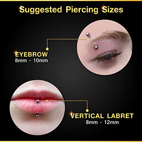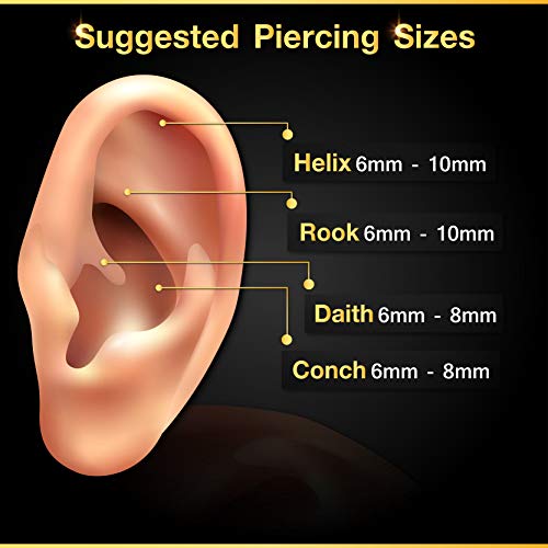 • UNIFORM SIZING means these earring for cartilage can be worn in a variety of piercings; Auricle, Cartilage, Helix, Lip, Lobe, Medusa, Pinna, Rim, Snake Bites, Spider Bites, Monroe, Labret, Tragus and many more.