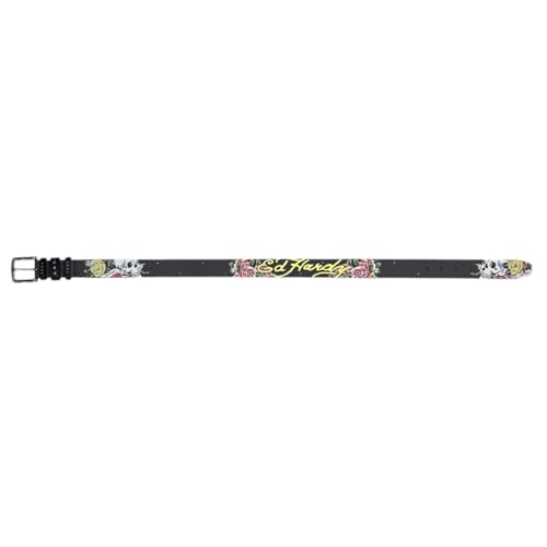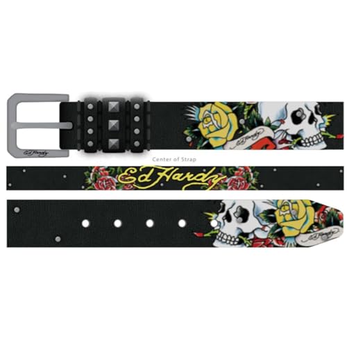 HOT ! ED HARDY Men's 38mm Skulls & Roses Print Studded Belt