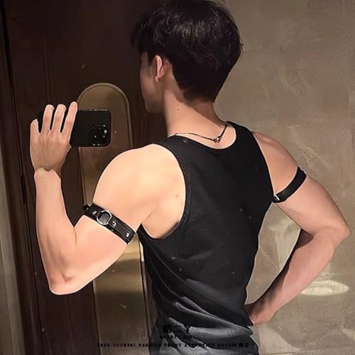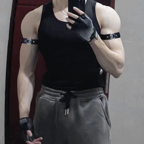 • Mens High Quality PU Leather Harness: Men's punk arms leather harness belt are made of high quality PU leather and stainless steel, soft and non-toxic. Strong and durable material, comfortable and flexible to wear. The packaging includes 2 PCS of arm harness