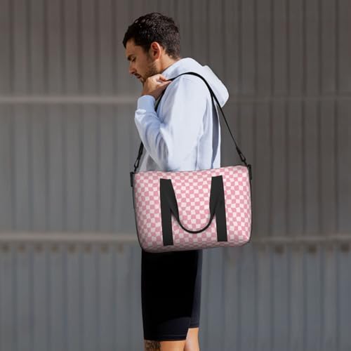 HOT ! Laptop Tote Bag for Women Work - Pink irregular plaid Gym Bag for Women Men, Personal Item Crossbody Travel Bags Carry On, Overnight Weekender Bags for Women Travel