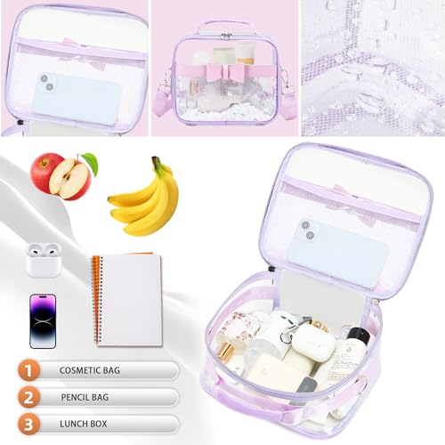 • 【Lunch bag for School,Heavy Duty PVC Material & Smooth Zipper】:The womens clear messenger purse is made of 0.5 mm thicker durable PVC material. which can get through security easily. It's an great clear lady mini purse whenver your're concerts, stadium, airport security check, workplace, daily life or other outdoor activities.It is both durable and soft that you can bend it as you need; and it would not crack even in cold weather