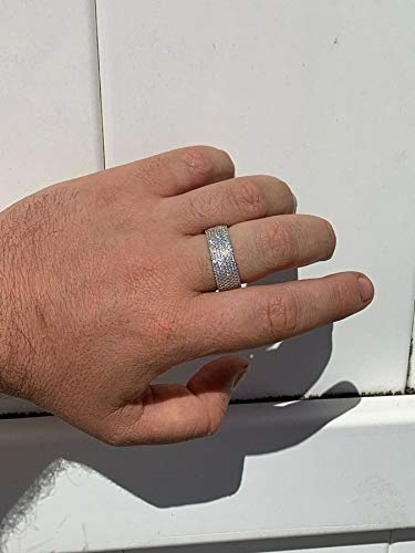HarlemBling Real Solid 925 Silver - His Or Hers Micropave Ring - Wedding Band Or Pinky Ring Looks Nice On Anyone - Iced Eternity Hip Hop Band 7
