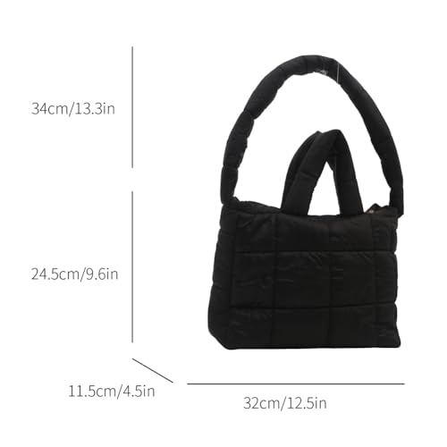 • Ample Storage: The puffer tote handbag's spacious design ensures it can easily store your like a smartphone, keys, wallet, and beauty products, keeping your necessities organized and within reach.