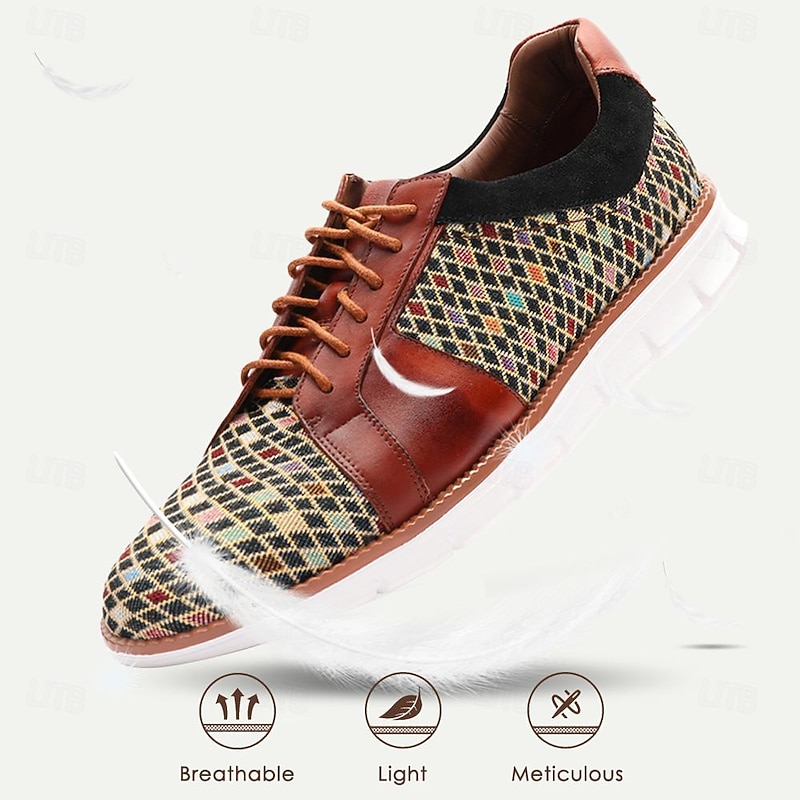 HOT ! Men's Woven Multicolor Lace-Up Sneakers - Stylish Casual Shoes with Premium Cowhide Leather Accents