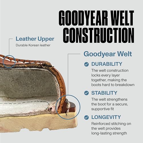 More information about EverBoots Mens Work Boots for Men, Leather EverFit Lightweight Comfort Boot, Anti Slip & Shock Absorption, Soft Oil Grain, Goodyear Welt, Industrial Construction, Roofing, Electrician