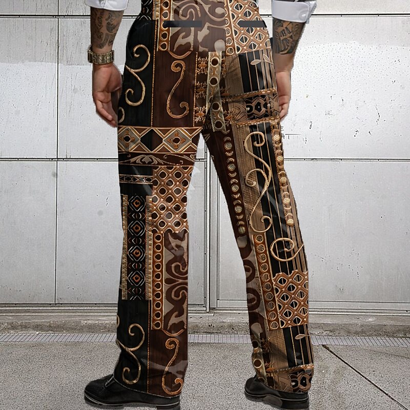 Men's Floral Ethnic Dress Pants Mid Waist Business Casual Formal Wedding Dailywear Zipper Pocket Straight Leg Trousers Summer Spring Fall 3D Print Yellow Blue Purple 10