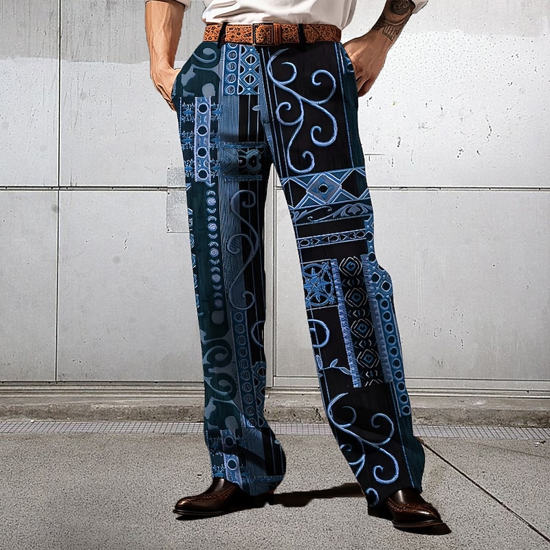 More information about Men's Floral Ethnic Dress Pants Mid Waist Business Casual Formal Wedding Dailywear Zipper Pocket Straight Leg Trousers Summer Spring Fall 3D Print Yellow Blue Purple