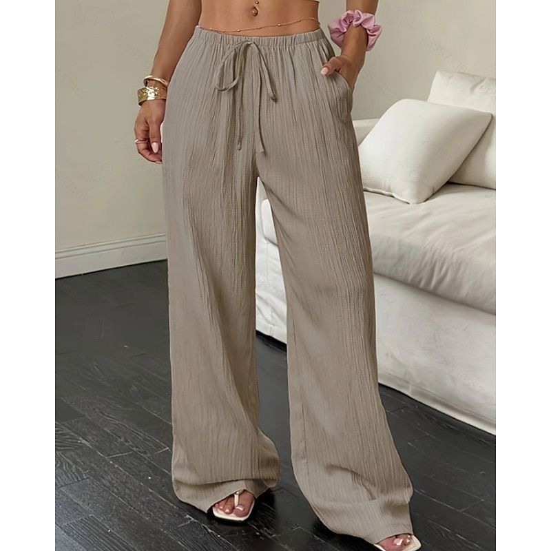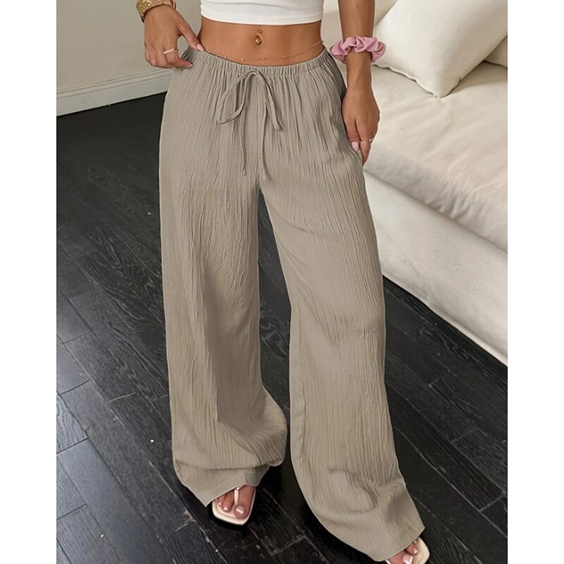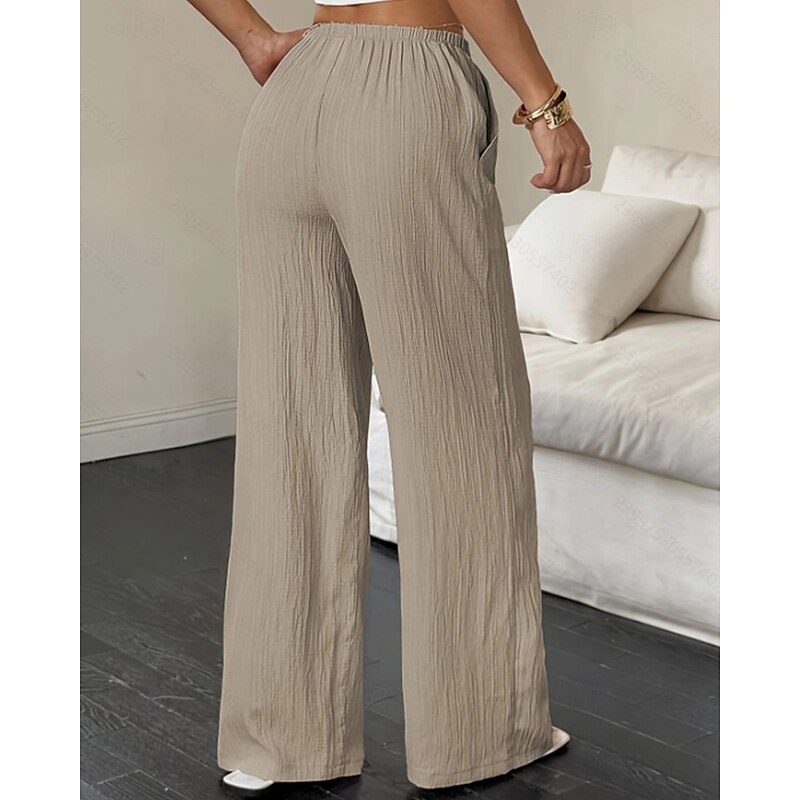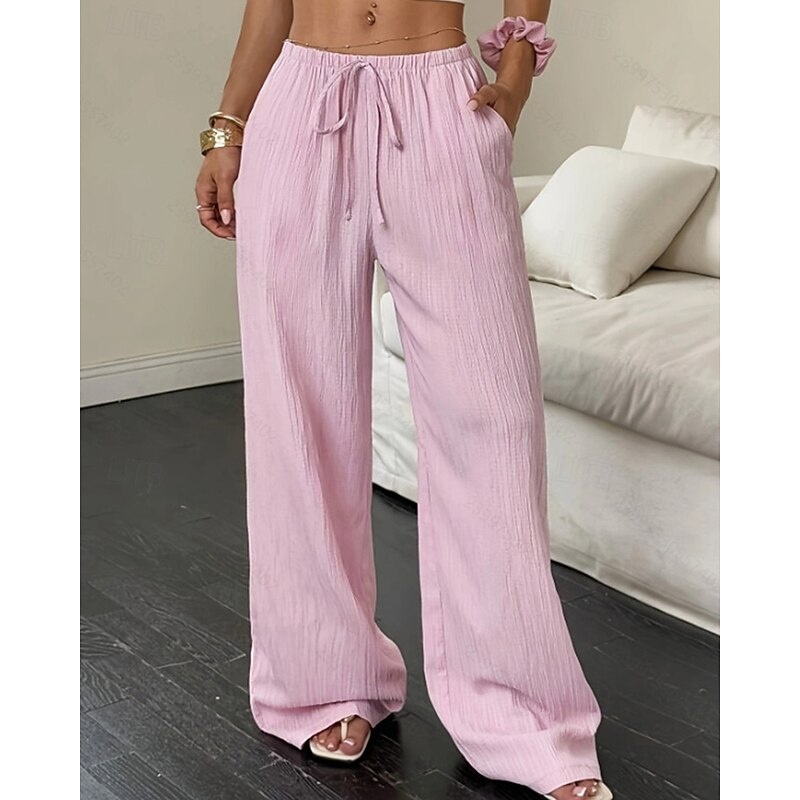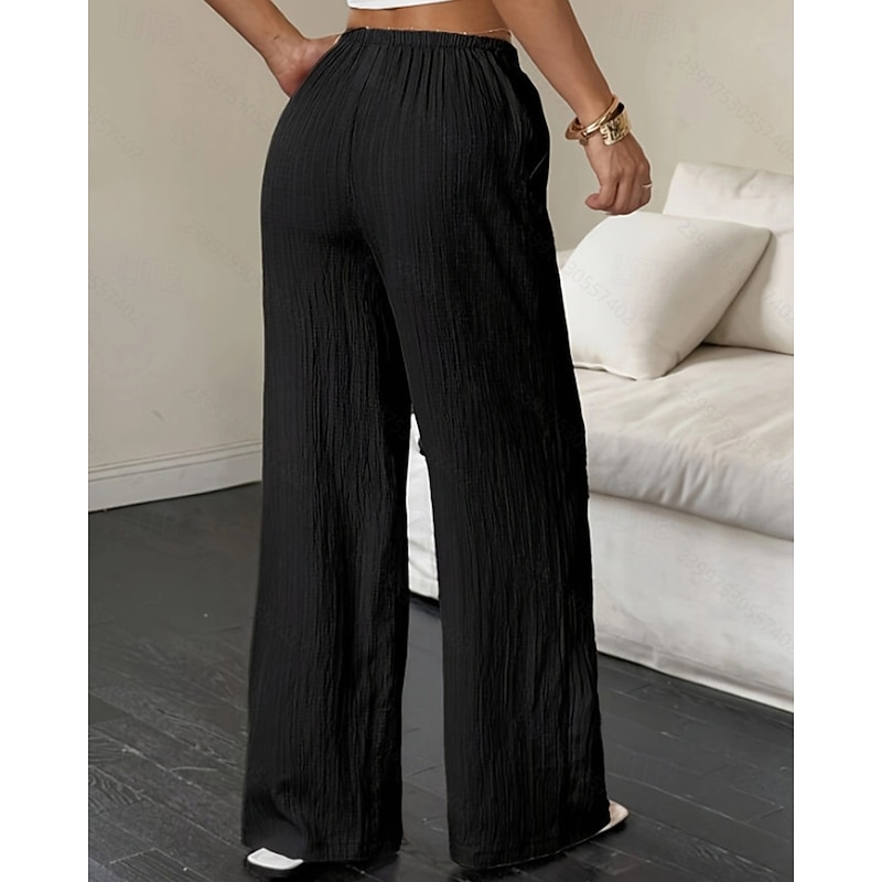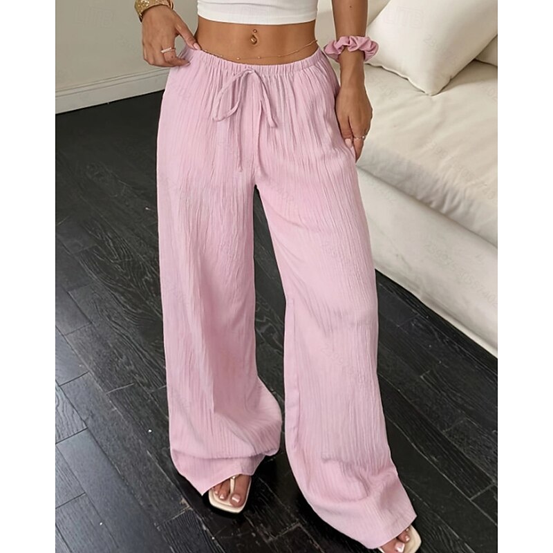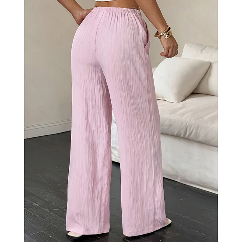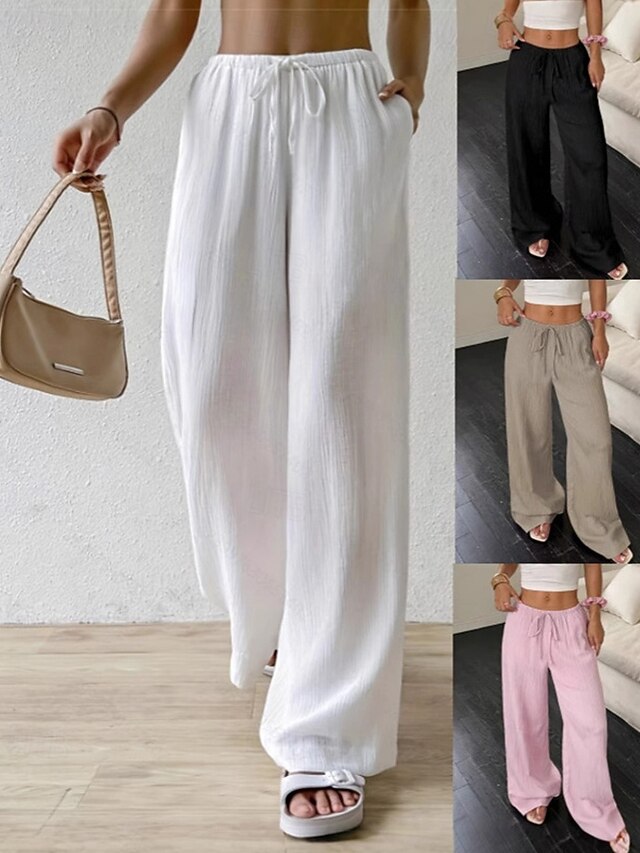 More information about Women's Wide Leg Pants Trousers Palazzo Pants Fashion Streetwear Full Length High Waist Plain Elastic Waist Breathability Comfortable Street Daily Wear Going out Black White Pink Khaki Summer Spring