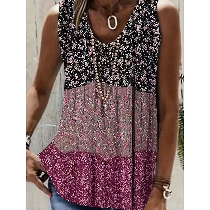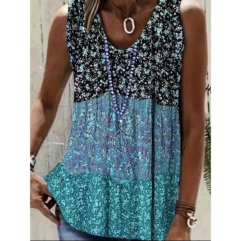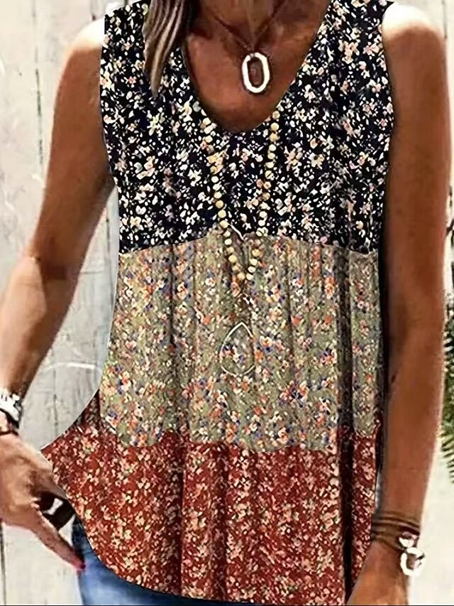 More information about Women's Tank Top Camisole Tank Top Floral Bohemia Ethnic Sleeveless V Neck Regular Tops Daily Holiday Print Royal Blue Blue Camel Fuchsia Green Summer