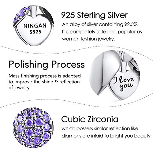 More information about NINGAN “I Love You” Dangle Charm Love Heart Pendant Bead for Women Wife Mom Daughter Friends with 5A Cubic Zirconia for Charm Bracelets in 925 Sterling Silver