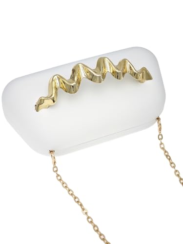 Women's Box Clutch Purse Metallic Wave Handle Handbags Party Evening Wedding Crossbody Bags With Chain 5