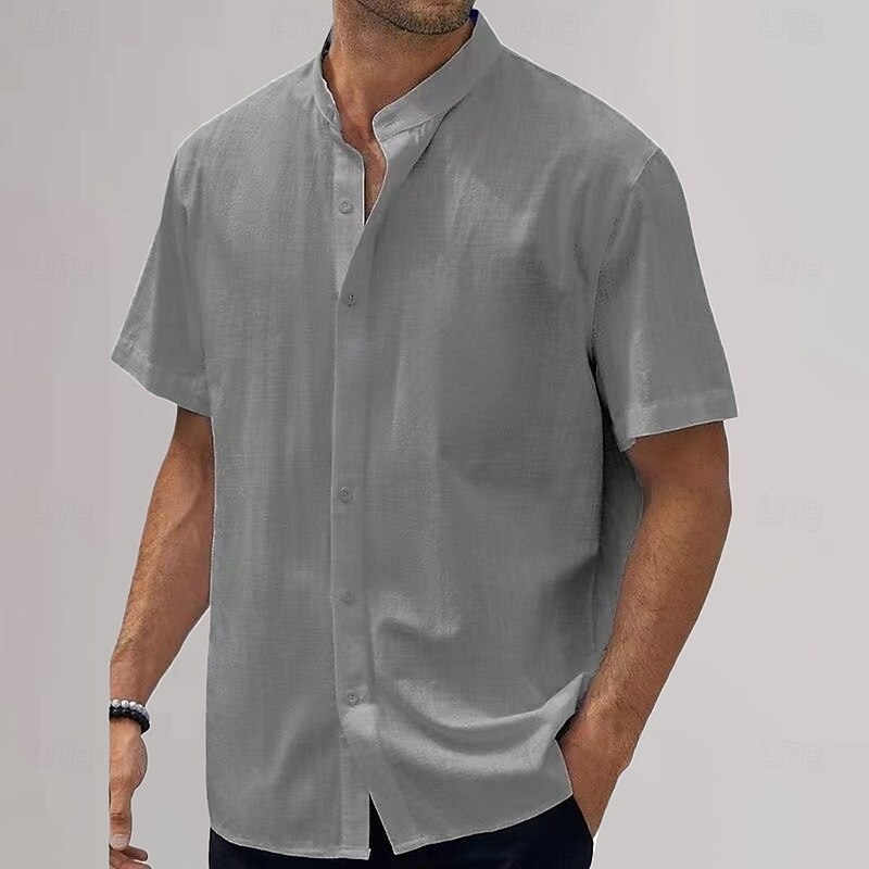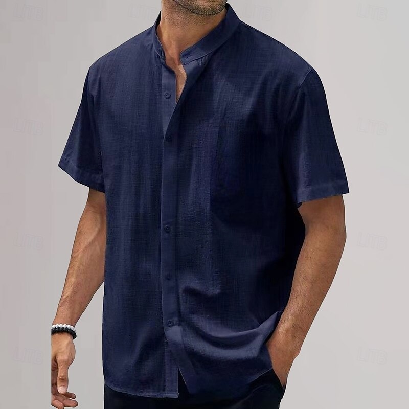 Highlights - Enjoy the summer season in style with this casual linen shirt designed for men - Perfect for vacations and days at the beach - Short sleeve design for a cool and comfortable fit - Features a trendy stand collar neckline - Add a touch of casual sophistication to your wardrobe