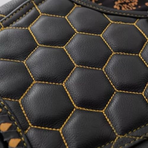 Men's Smart Biker Vest for Men Premium Cowhide Black Leather Motorcycle Vest with Unique Scoop Collar Design &Gold Liner 6
